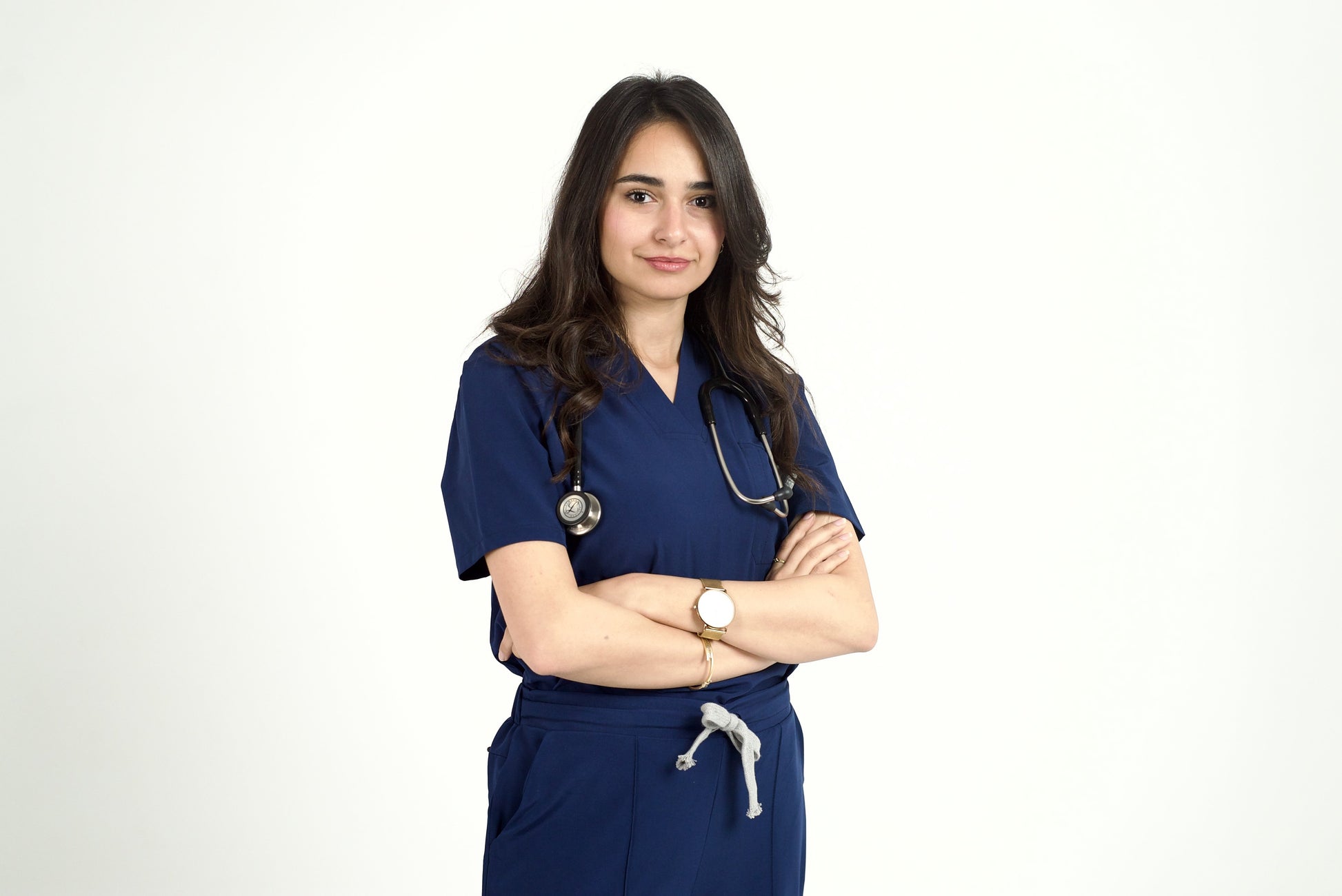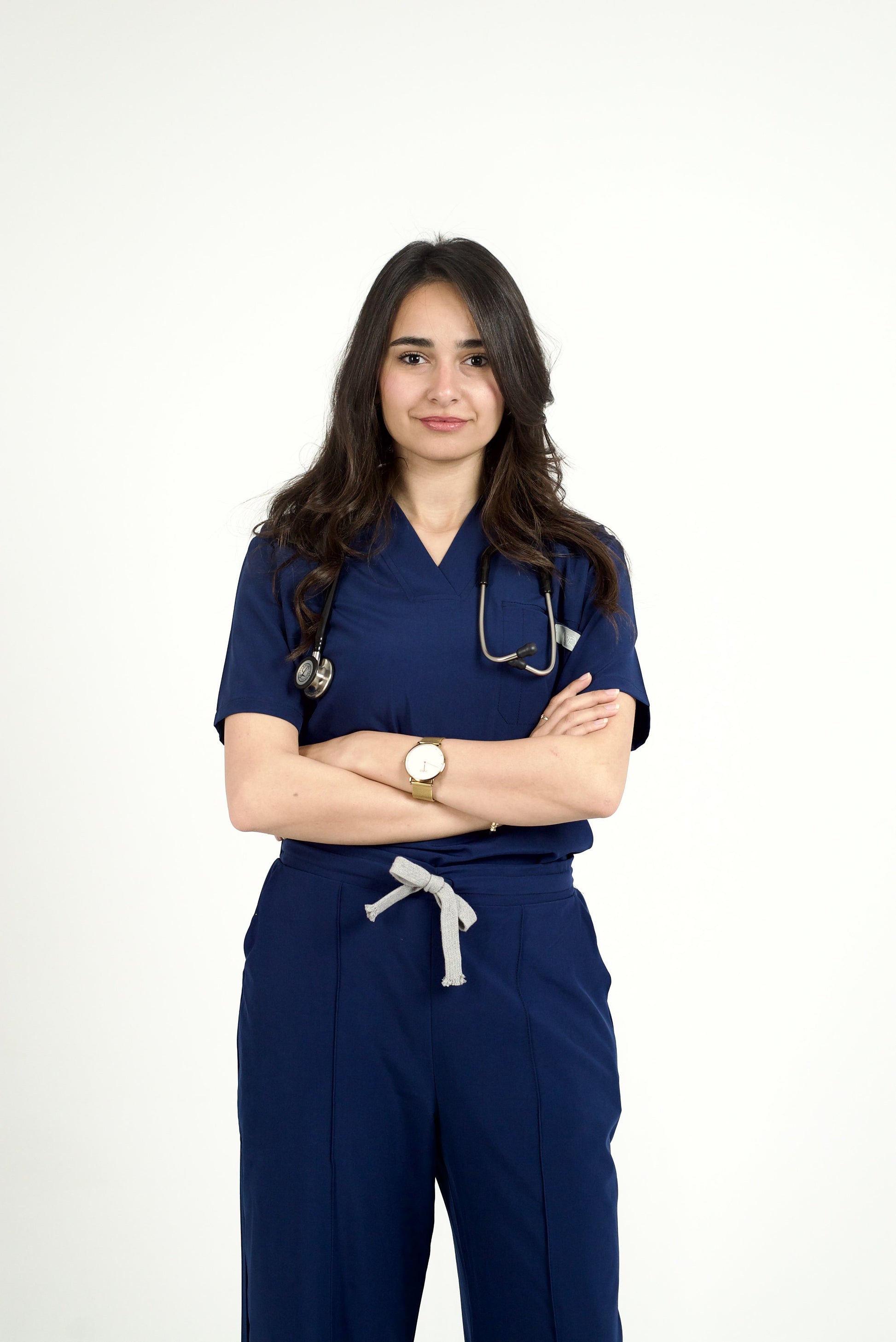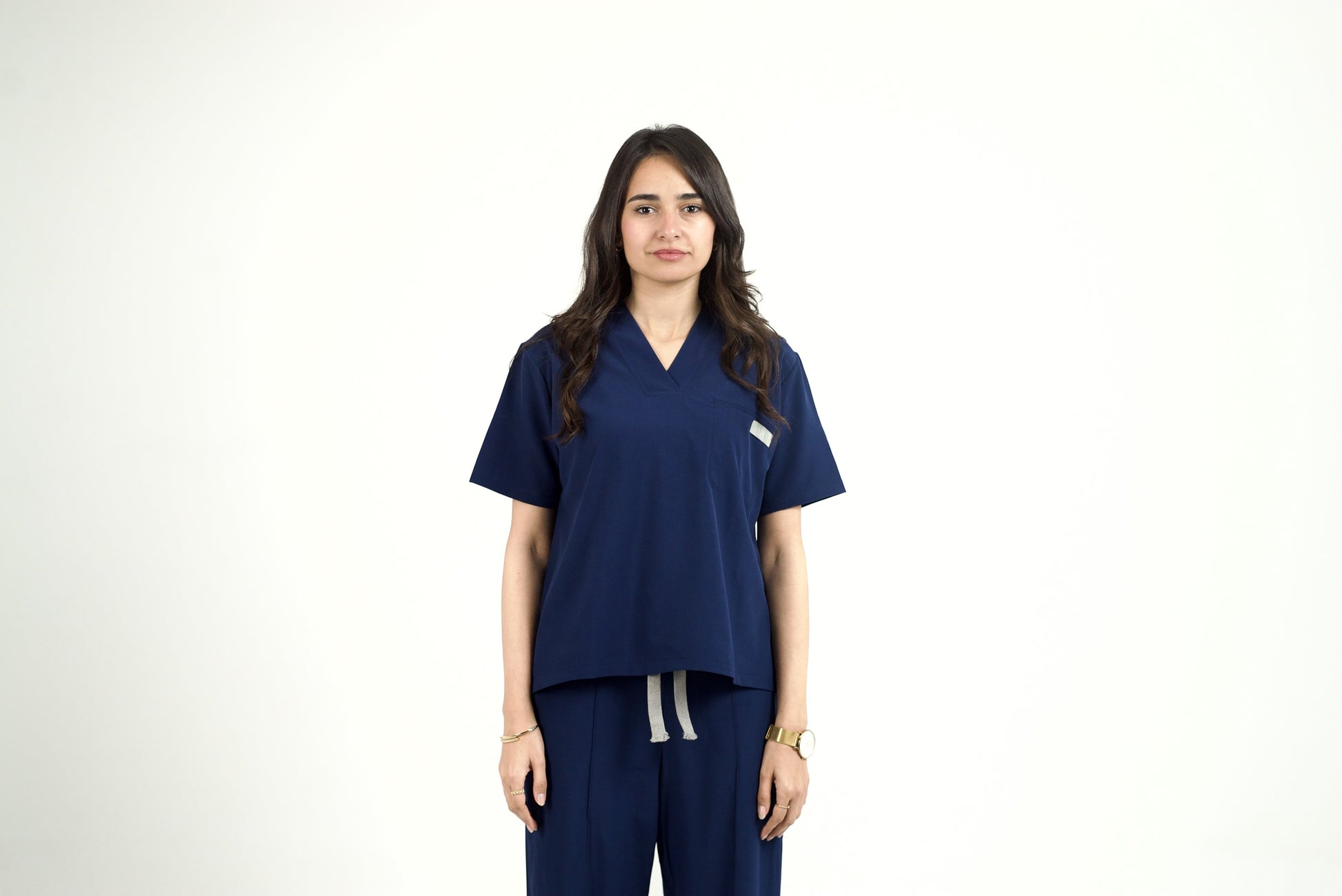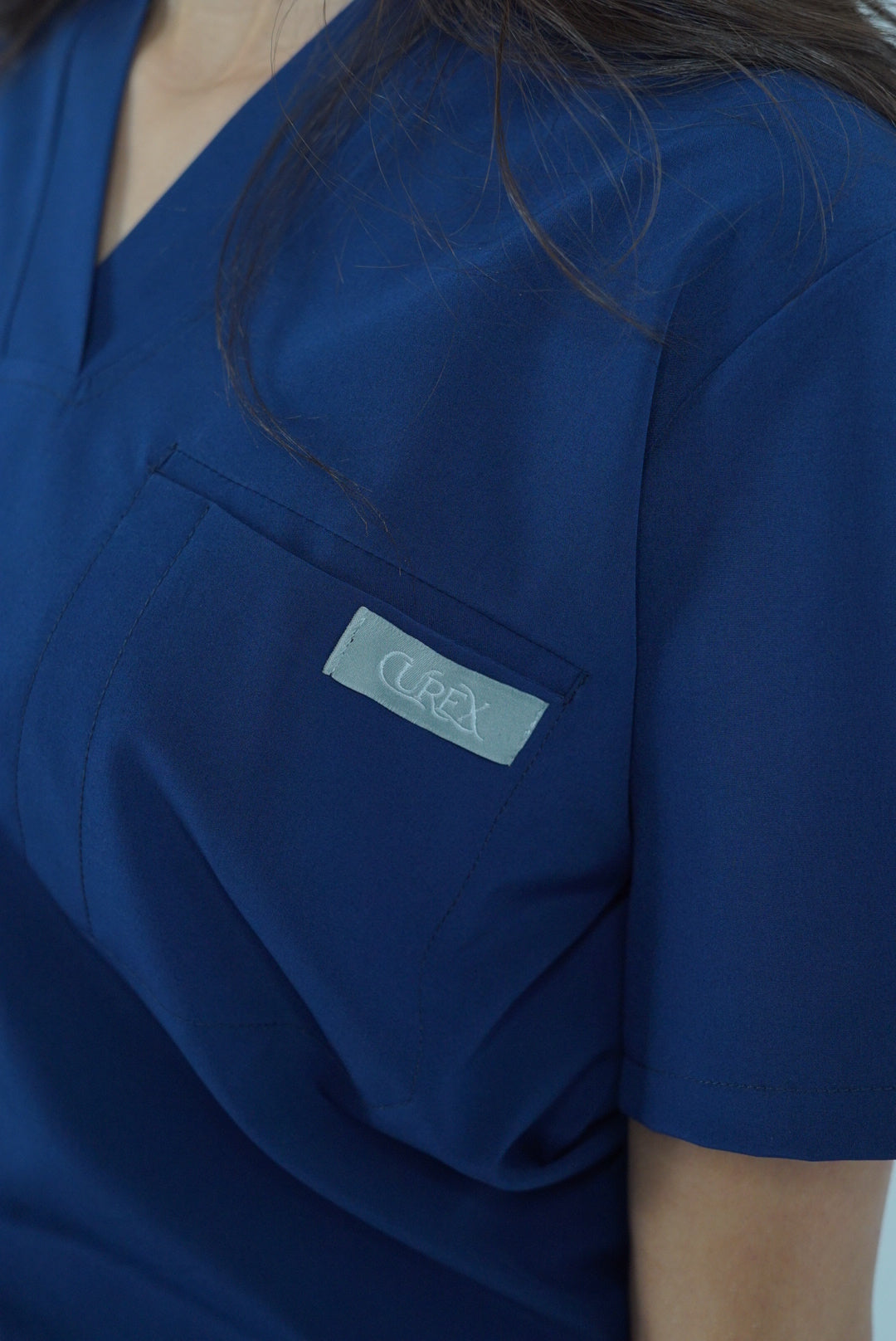 Stay effortlessly stylish and comfortable with the Midnight Care Scrub Set. Made from ultra-soft, moisture-wicking fabric, this set is perfect for long shifts. The tailored top features a zippered neckline for a modern touch, while the pants are designed with an elastic waistband and multiple storage pockets. The deep navy blue color adds a sophisticated and professional edge to your medical wardrobe.