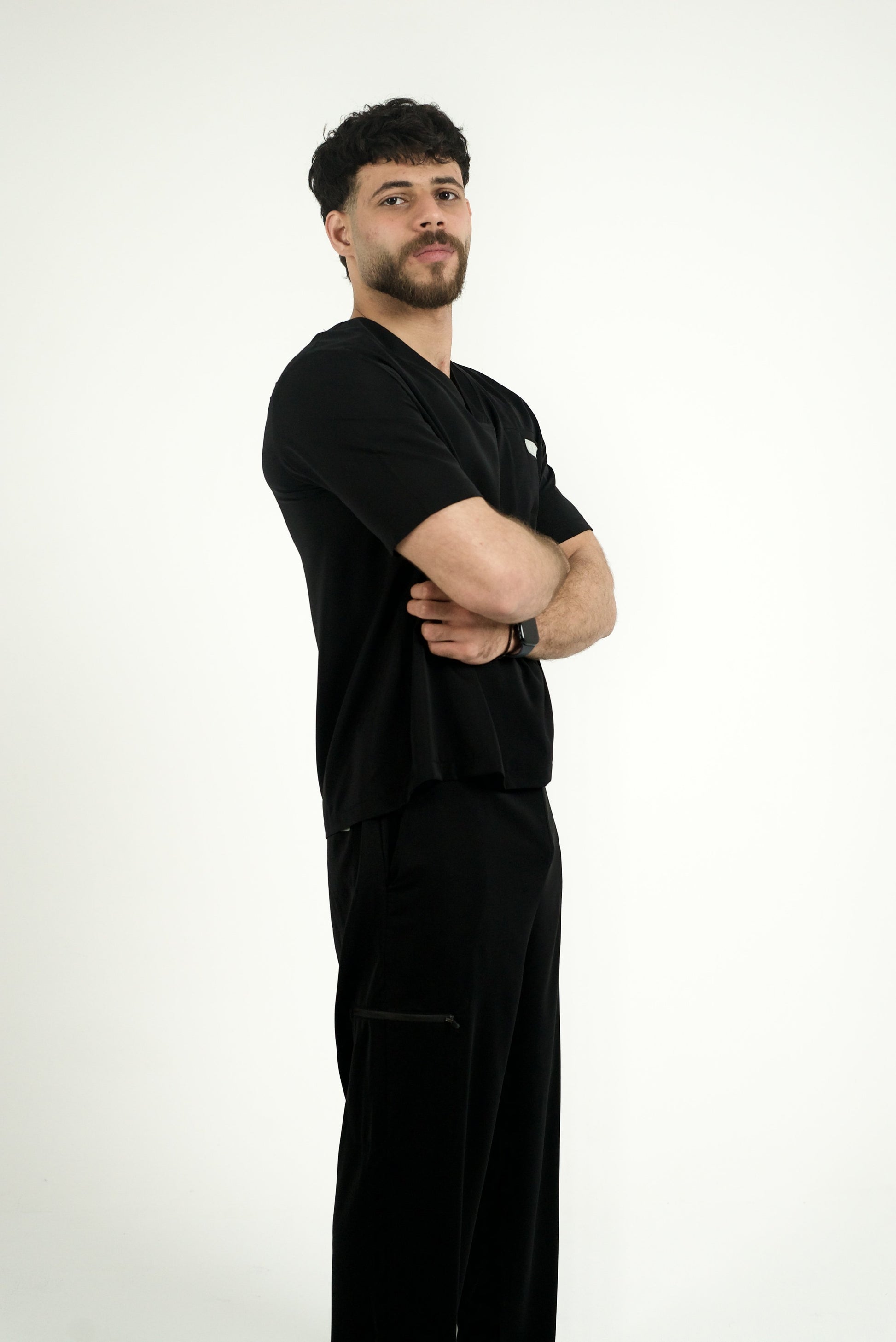Designed for modern healthcare professionals, the Onyx Pro Scrub Set delivers a sleek and athletic fit with maximum comfort. Crafted from a high-performance blend of breathable, wrinkle-resistant fabric, this set ensures durability while keeping you cool during long shifts. Featuring a tailored V-neck top with a secure chest pocket and jogger-style pants with multiple pockets, it’s the perfect combination of function and style.