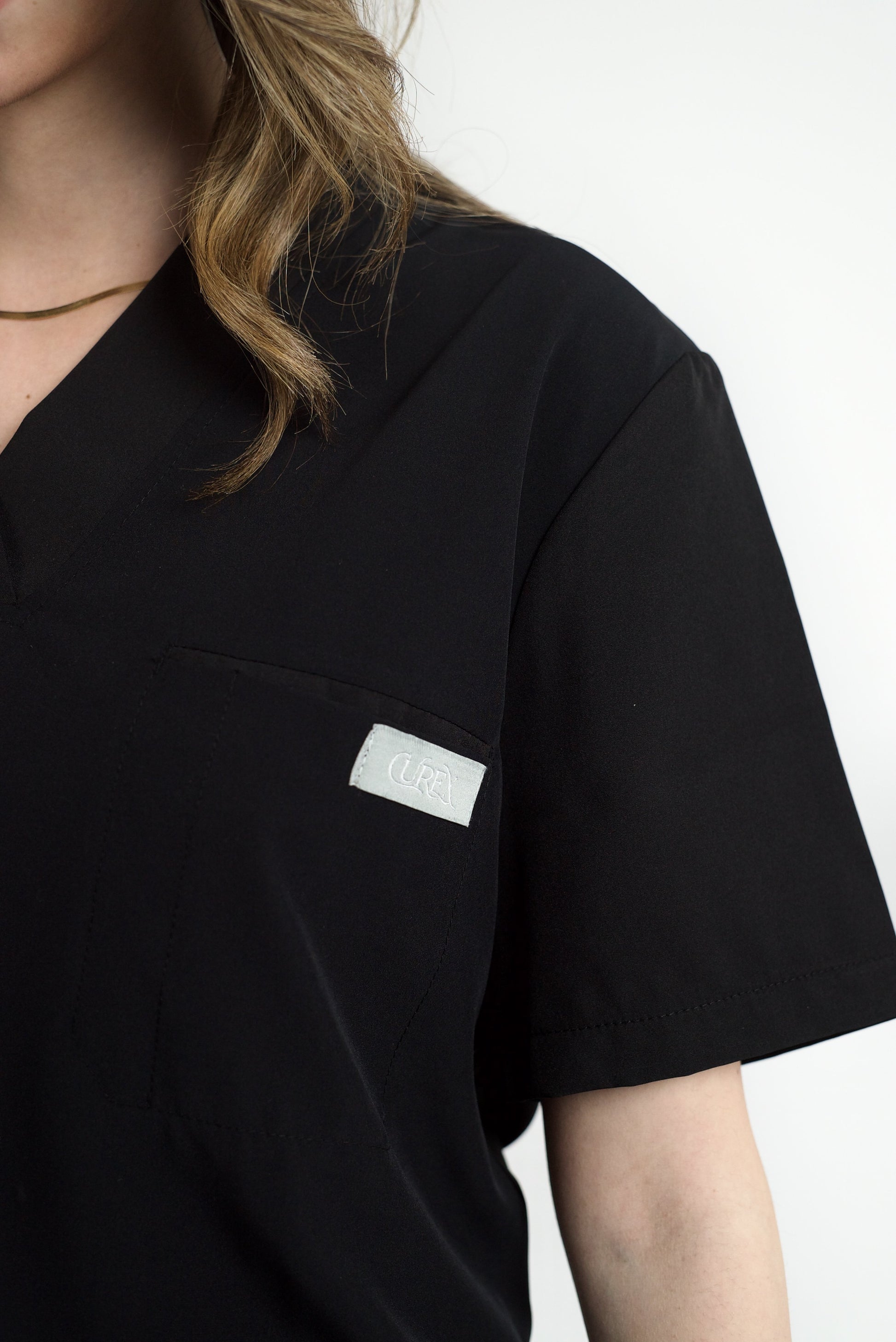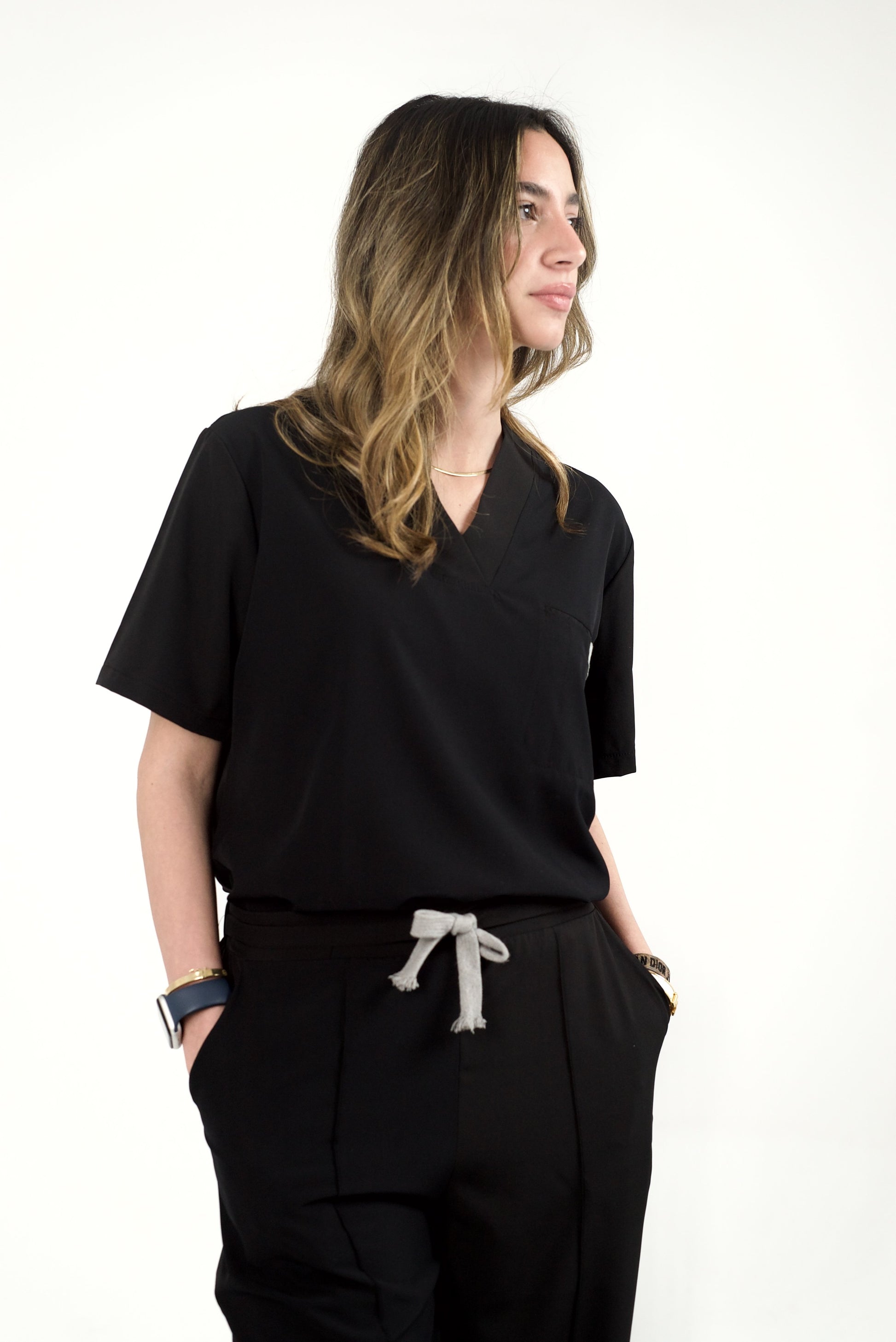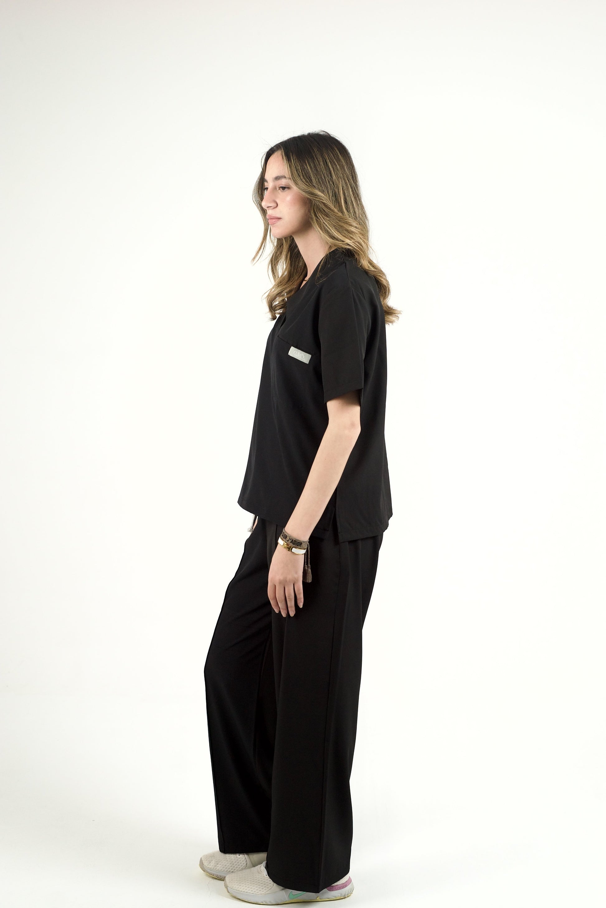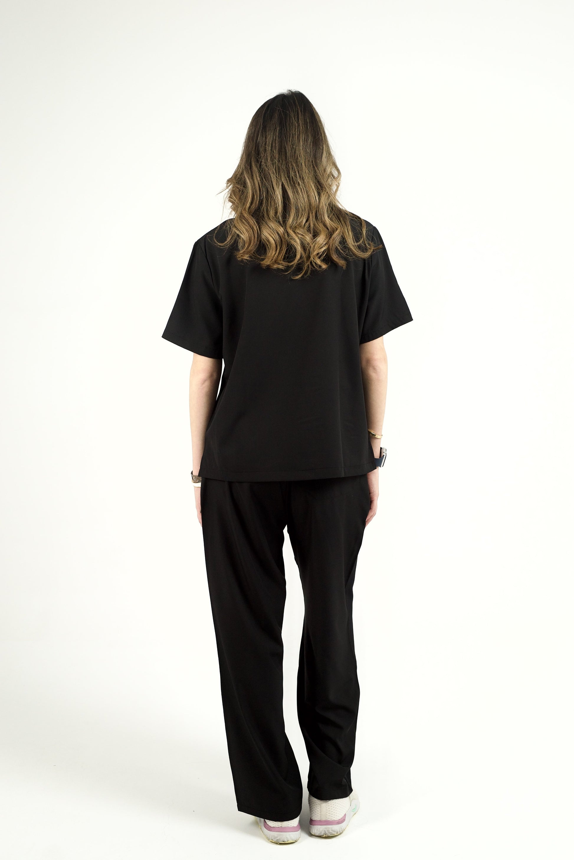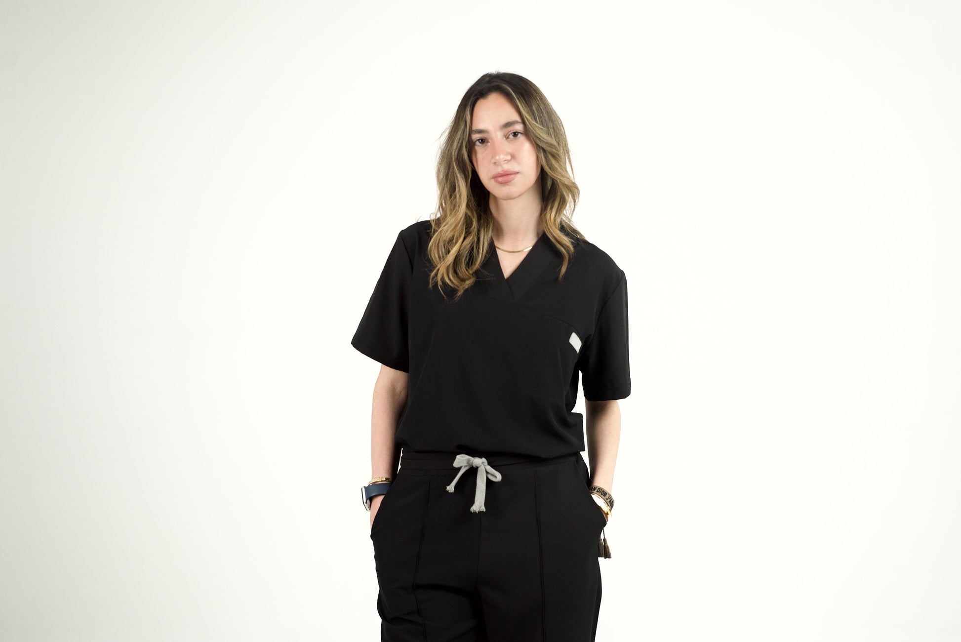 The Shadow Flex Scrub Set is where comfort meets elegance. Designed with a figure-flattering silhouette and four-way stretch fabric, this set allows you to move freely while maintaining a polished look. The top features a minimalist design with functional pockets, while the tapered pants provide a modern, professional fit. Whether in the ER or a clinic, this scrub set keeps up with your demanding schedule.